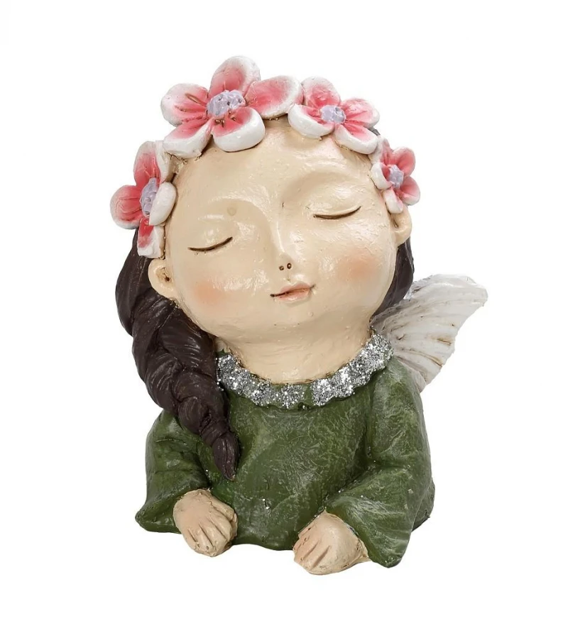 Διακοσμητική επιτραπέζια φιγούρα, νεράιδα με στεφάνι, polyresin σε πράσινο χρώμα από την ESPIEL - Διαστάσεις: 13x12x15εκ.