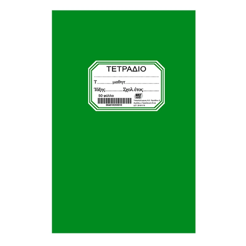 Τετράδιο 50 φύλλων σε πράσινο χρώμα από την justnote - Διαστάσεις: 17x25εκ. - Η ελάχιστη ποσότητα αγοράς για αυτό το προιόν είναι 10τμχ.