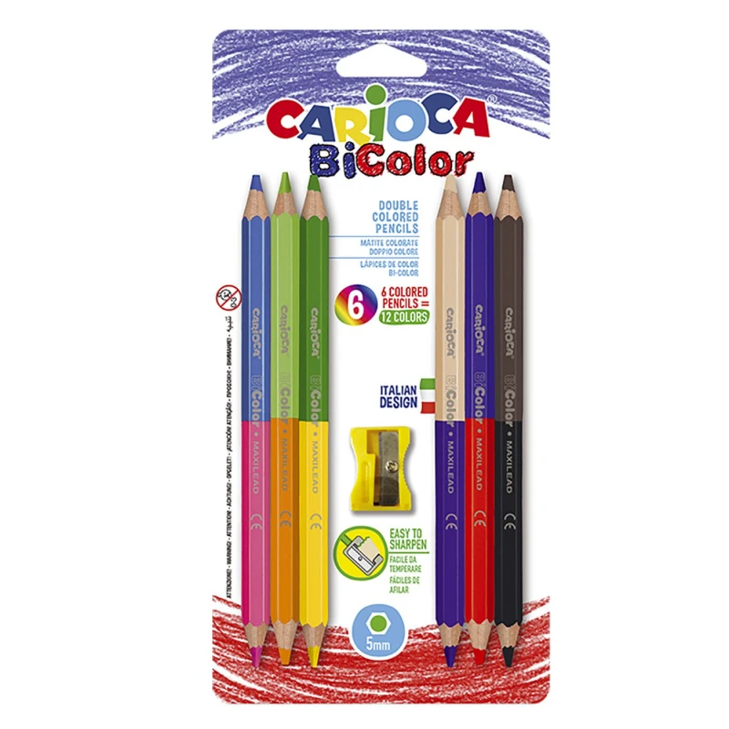 Ξυλομπογιές Jumbo Σετ 6τμχ Διπλής Γραφής Με Ξύστρα CARIOCA 60-724