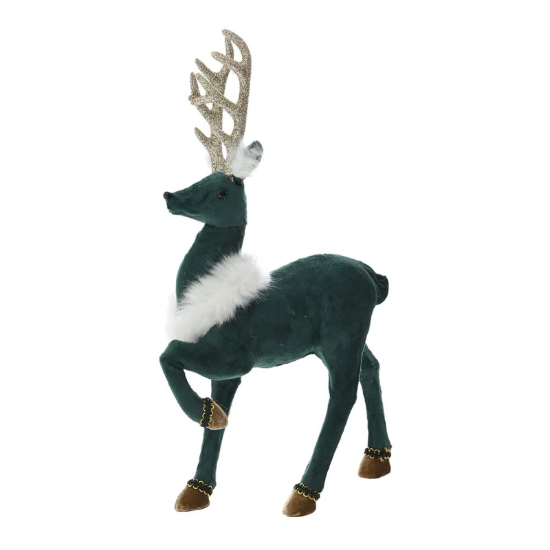 Χριστουγεννιάτικο διακοσμητικό επιτραπέζιο ελάφι σε πράσινο χρώμα και χρυσά κέρατα από την iliadis - Διαστάσεις: 20x11x34εκ.