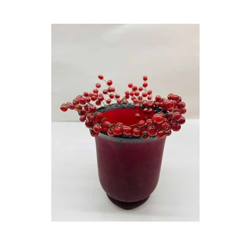 Κηροπήγιο γυάλινο με γυάλινες χάντρες και σε κόκκινο χρώμα από την Royal Art Collection - Διαστάσεις: 15x10εκ.