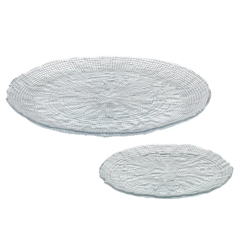 Σετ πάστας 7τμχ γυάλινο, χειροποίητο της σειράς Kanvas Clear από την CRYSPO TRIO. Το σετ περιλαμβάνει: 1 πιατέλα σερβιρίσματος: 33εκ. και 6 πιατάκια γλυκού: 21εκ.