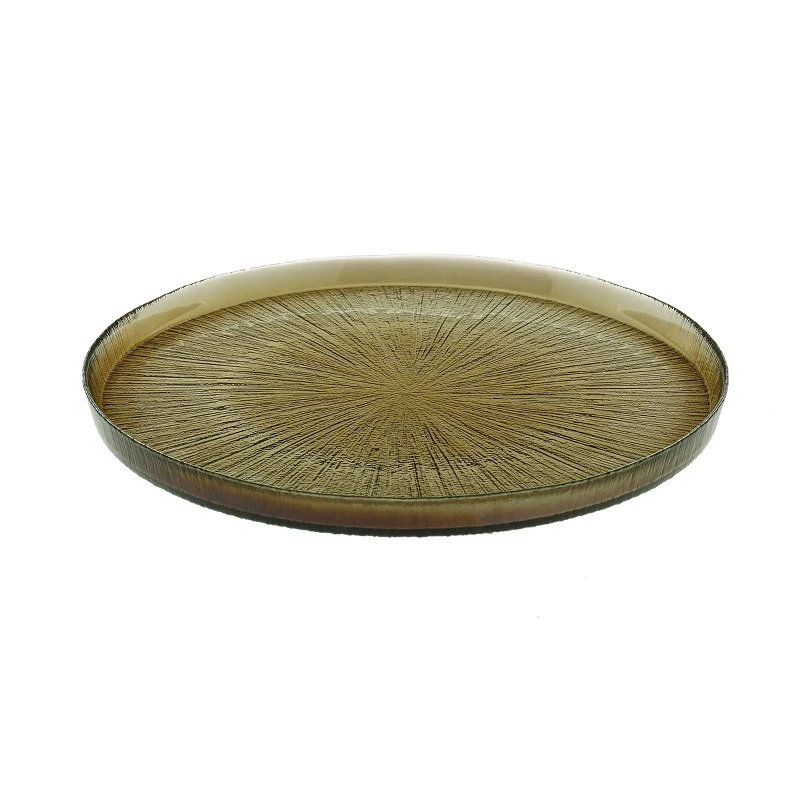 Πιατέλα σερβιρίσματος γυάλινη, χειροποίητη της σειράς Rexy Smoke από την CRYSPO TRIO - Διαστάσεις: 28εκ.