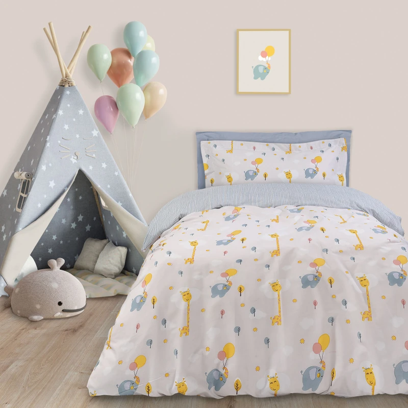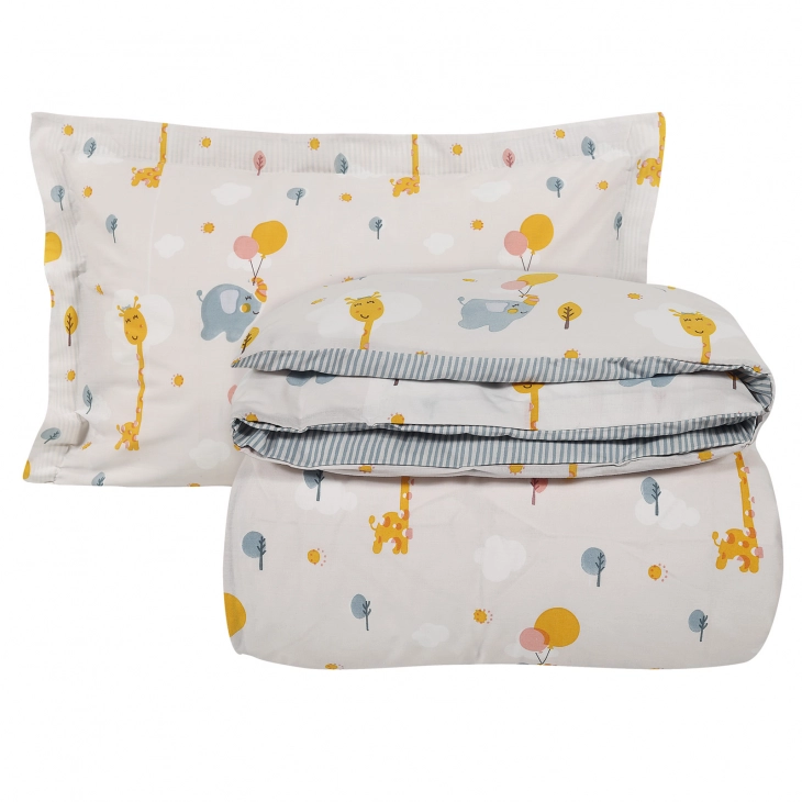Σετ παπλωματοθήκη της σειράς Kid δύο όψεων. Είναι από 100% υποαλλεργικό βαμβάκι με πυκνότητα ύφανσης 160 TC, ιδιαίτερα απαλή στην αφή & ανθεκτική στη χρήση. Το σετ περιλαμβάνει μία παπλωματοθήκη διάστασης 160x240εκ. και μία μαξιλαροθήκη 50x70+5εκ. Das home...makes your house a home!
