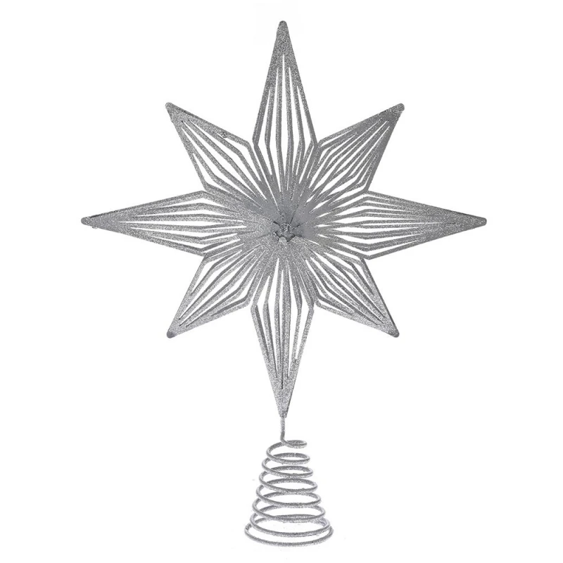 Χριστουγεννιάτικη κορυφή δέντρου αστέρι σε ασημί χρώμα από την iliadis - Διαστάσεις: 22x30εκ.
