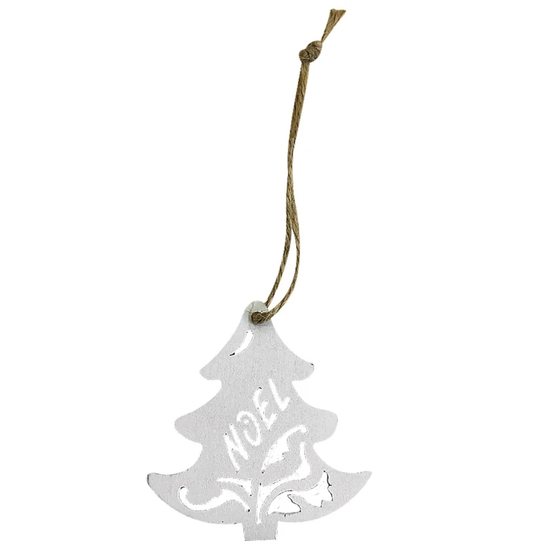 Χριστουγεννιάτικο στολίδι κρεμαστό δέντρο ξύλινο σε λευκό χρώμα από την Xmas fest - Διαστάσεις: 7εκ.