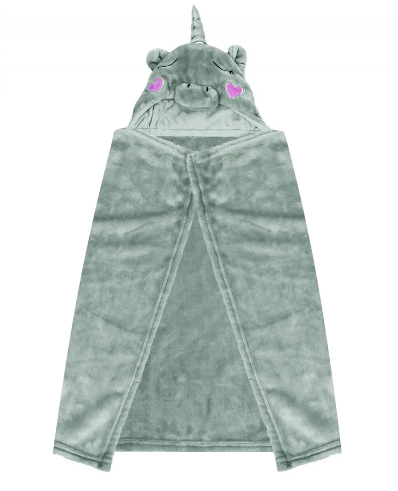 Κουβέρτα bebe μονόκερος, fleece 100% polyester, σε γκρι χρώμα από την Makis Tselios - Συνολική Διάσταση: 36x86εκ. Διάσταση κουκούλας: 18εκ. Διάσταση τσέπης: 8εκ.
