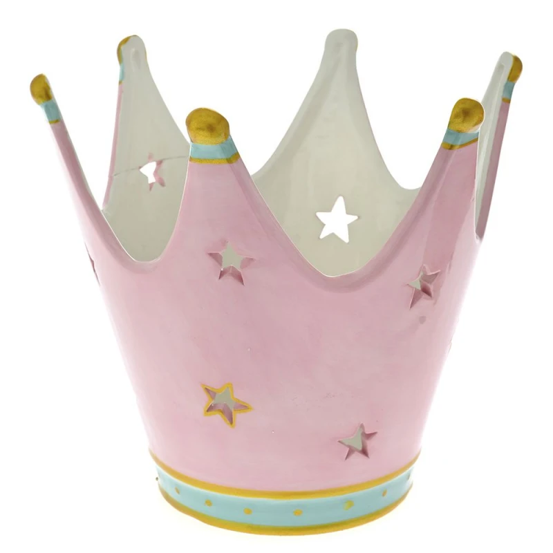Διακοσμητική επιτραπέζια κορώνα κεραμική σε ροζ-σιέλ χρώμα από την iliadis - Διαστάσεις: 20x18εκ.