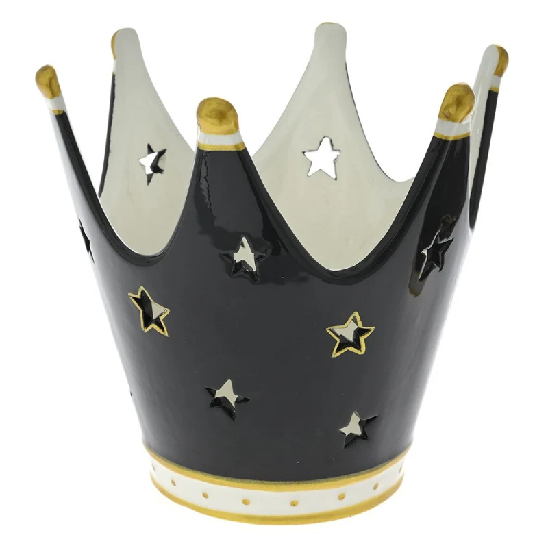 Διακοσμητική επιτραπέζια κορώνα κεραμική σε μαύρο-λευκό χρώμα από την iliadis - Διαστάσεις: 20x18εκ.