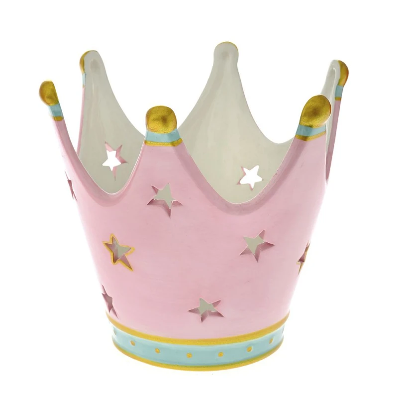 Διακοσμητική Επιτραπέζια Κορώνα Κεραμική Ροζ-Σιελ iliadis 15x14εκ. 78922