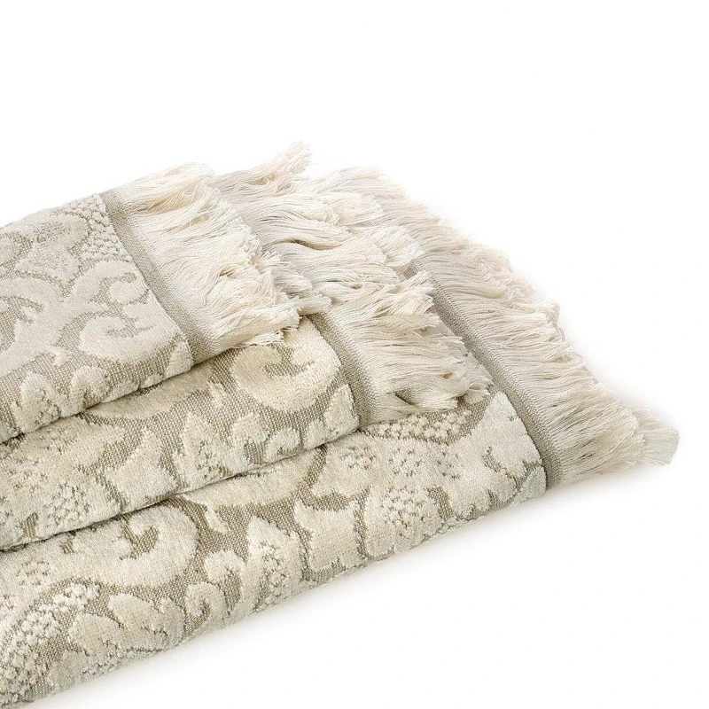 Σετ 3τμχ πετσέτες μπάνιου ζακάρ, 100% βαμβακερές, 550gr σε εκρού χρώμα από την CRYSPO TRIO. Το σετ περιλαμβάνει: 1 πετσέτα σώματος 70x140εκ., 1 πετσέτα προσώπου 50x90εκ. και 1 πετσέτα χεριών 30x50εκ.
