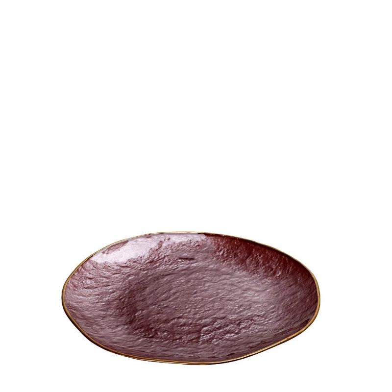 Διακοσμητική πιατέλα γυάλινη σε ροζ χρώμα με χρυσό χείλος της σειράς shine από την ESPIEL - Διαστάσεις: 28x2εκ.