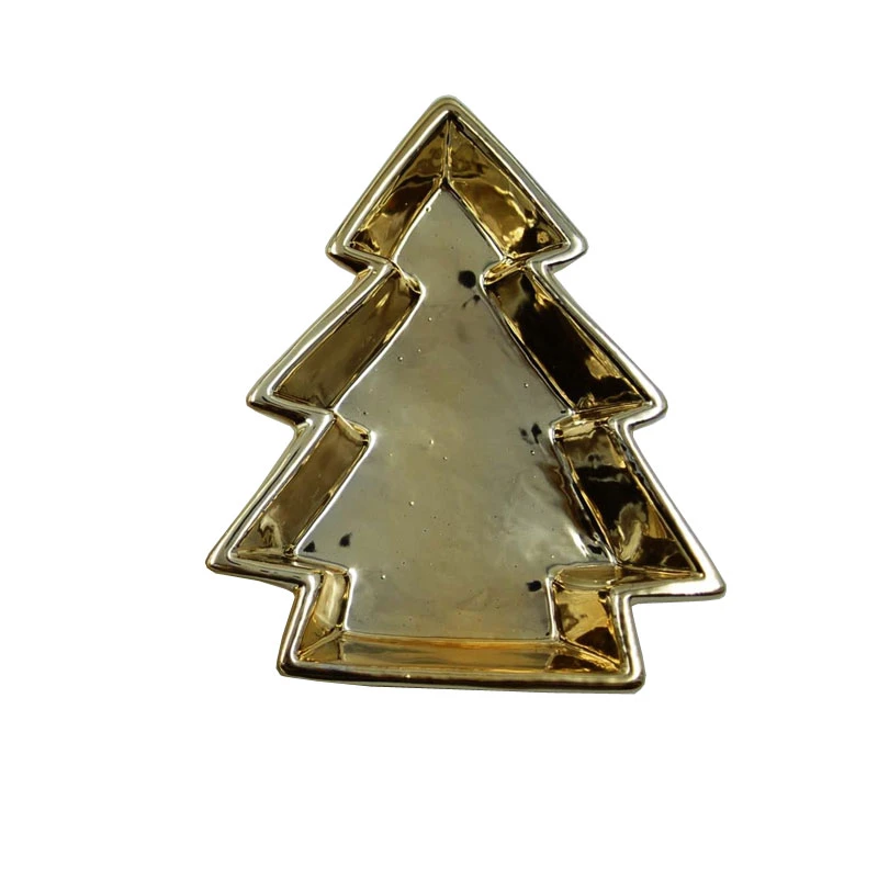 Χριστουγεννιάτικη διακοσμητική πιατέλα κεραμική, σε σχήμα δέντρου και σε χρυσό χρώμα από την Royal Art Collection - Διαστάσεις: 17εκ.