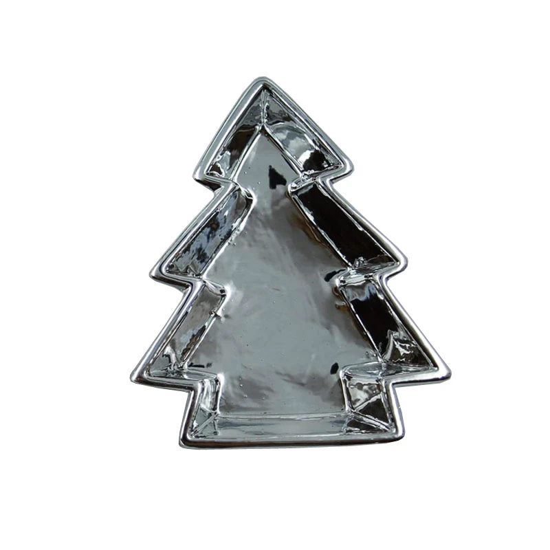 Χριστουγεννιάτικη διακοσμητική πιατέλα κεραμική, σε σχήμα δέντρου και σε ασημί χρώμα από την Royal Art Collection - Διαστάσεις: 17εκ.