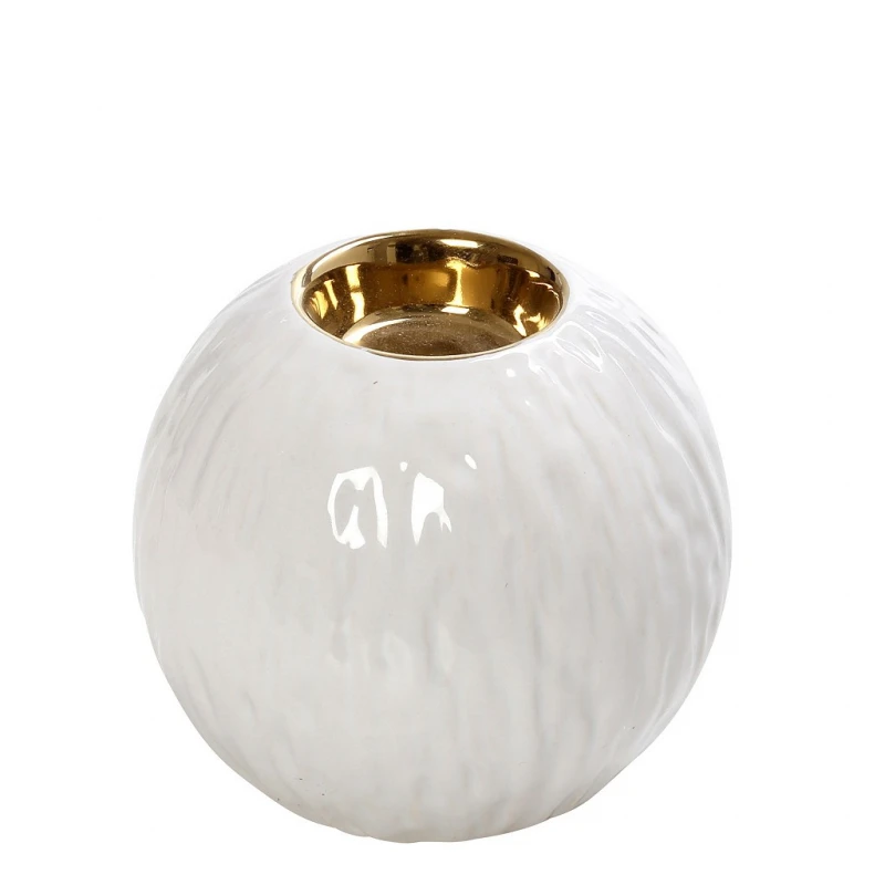 Κηροπήγιο για ρεσώ κεραμικό σε λευκό-χρυσό χρώμα από την ESPIEL - Διαστάσεις: 11x11x10εκ. Η ελάχιστη ποσότητα αγοράς για αυτό το προιόν είναι 4τμχ.