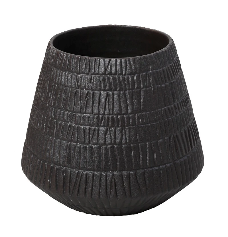 Διακοσμητικό μπωλ-βάζο πορσελάνης, scratched, σε σκούρο καφέ χρώμα από την ESPIEL - Διαστάσεις: 28,6x26εκ.