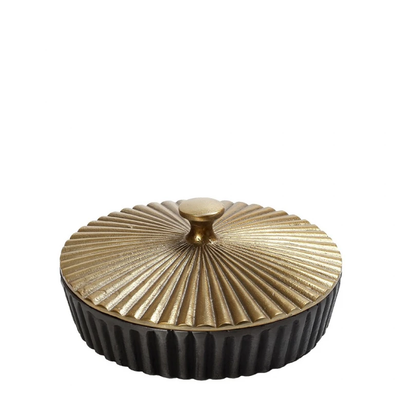 Διακοσμητικό κουτί αλουμινίου, με καπάκι, σε γκρι-χρυσό χρώμα από την ESPIEL - Διαστάσεις: 20x8,5εκ.