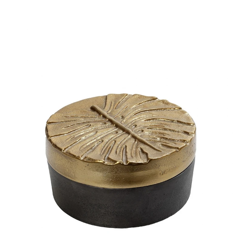 Διακοσμητικό κουτί αλουμινίου, με καπάκι, στρογγυλό και σε γκρι-χρυσό χρώμα από την ESPIEL - Διαστάσεις: 19x8,5εκ.