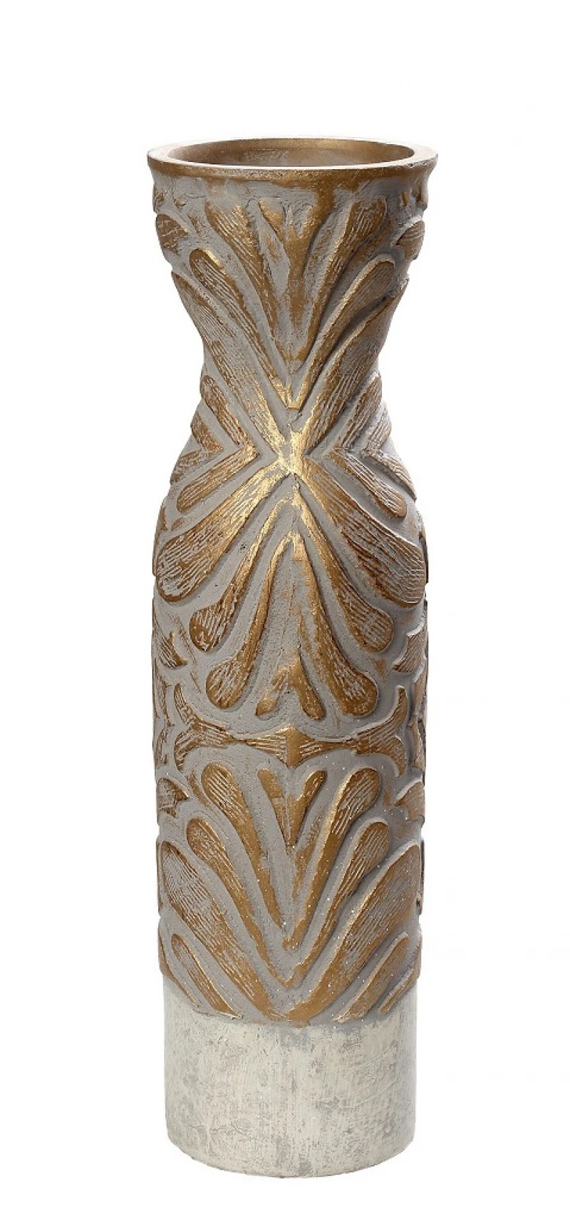 Βάζο από ανακυκλωμένο πεπιεσμένο χαρτί, χειροποίητο και ζωγραφισμένο στο χέρι, σε χρυσό-λευκό χρώμα, της σειράς Ecomix από την ESPIEL - Διαστάσεις: 15,24x55,88εκ.