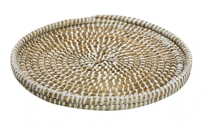 Στρογγυλός δίσκος ψάθινος σε μπεζ - λευκό χρώμα από την ESPIEL - Διαστάσεις: 35x3εκ.