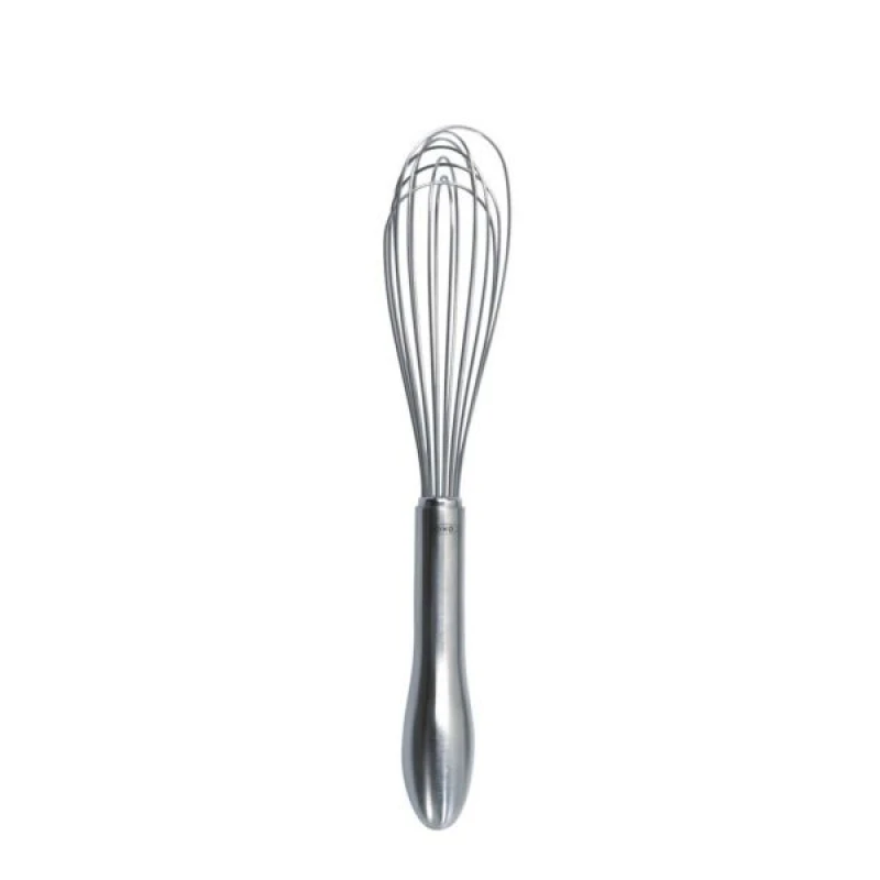 Αναδευτήρι με λαβή από ανοξείδωτο ατσάλι που έχει σχεδιαστεί για να μεγιστοποιεί την άνεση κατά τη χρήση. Το πίσω άκρο σε σχήμα βολβού εφαρμόζει άνετα στην παλάμη του χεριού, για ένα βολικό και γρήγορο χτύπημα και ανακάτεμα υλικών από την Oxo - Διαστάσεις: 25,5εκ.