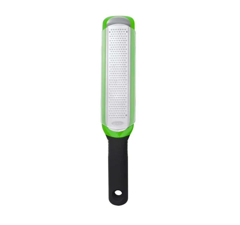 Ανοξείδωτος Τρίφτης Χειρός OXO. Διευκολύνει το τρίψιμο και το ξύσμα σκληρού τυριού, εσπεριδοειδών, τζίντζερ, σοκολάτας και πολλά άλλα. Η άνετη μαλακή λαβή προσφέρει άνεση κατα τη χρήση,ενώ το αντιολισθητικό πόδι της παρέχει πρόσθετο έλεγχο κατά τη χρήση.