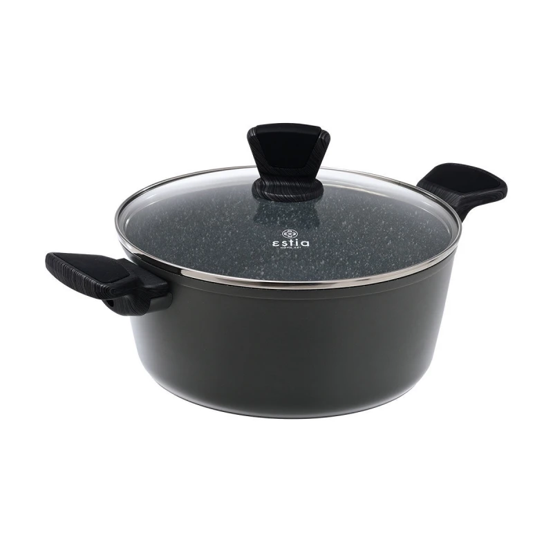 Κατσαρόλα πρεσσαριστού αλουμινίου, με εργονομικές και αντιολισθητικές λαβές, με τριπλή αντικολλητική επίστρωση και ενισχυμένη εξωτερική επιφάνεια, κατάλληλη για κάθε τύπο εστίας, της σειράς cuisson από την estia - Διαστάσεις: 28εκ.