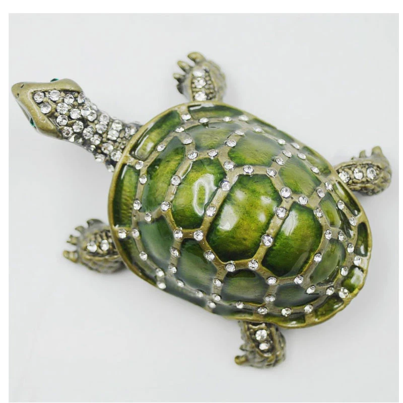 Διακοσμητικό κουτάκι μινιατούρα σε σχήμα χελώνας, σε πράσινο χρώμα με σμάλτο και στρας από την Royal Art Collection - Διαστάσεις: 9x6x3εκ.