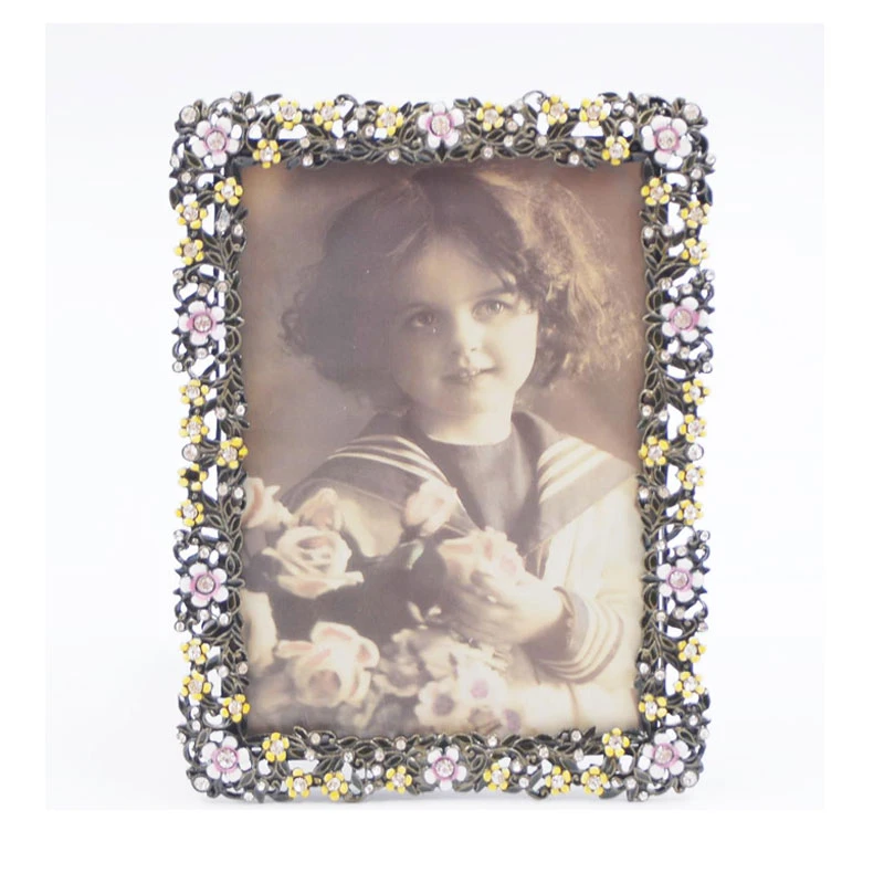Κορνίζα μεταλλική με στρας και λουλούδια σε ροζ-κίτρινο χρώμα από την Royal Art Collection - Διάσταση φωτογραφίας: 13x18εκ.