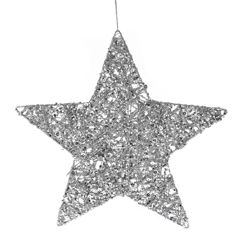 Χριστουγεννιάτικο κρεμαστό στολίδι αστέρι σε ασημί χρώμα από την iliadis - Διαστάσεις: 25εκ. - Η ελάχιστη ποσότητα αγοράς για αυτό το προϊόν είναι 4τμχ.