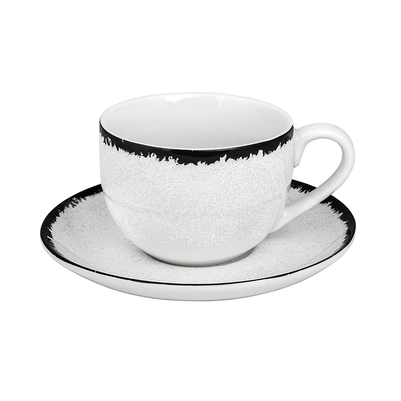 Σετ 6τμχ φλυτζάνια τσαγιού πορσελάνης σε λευκό χρώμα με μαύρη λεπτομέρεια από την Oriana Ferelli - Χωρητικότητας: 220ml.