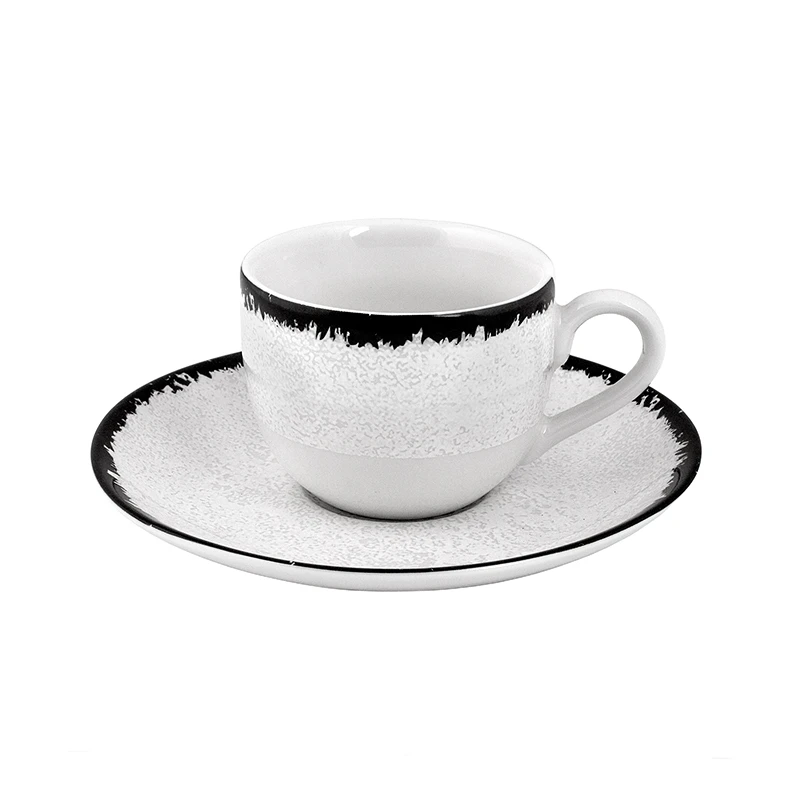 Σετ 6τμχ φλυτζάνια καφέ πορσελάνης σε λευκό χρώμα με μαύρη λεπτομέρεια από την Oriana Ferelli - Χωρητικότητας: 90ml.