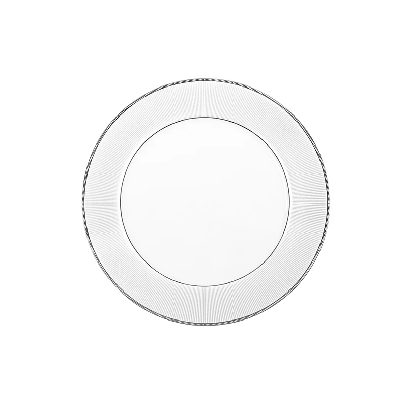 Πιάτο φρούτου πορσελάνης σε λευκό χρώμα με πλατίνα, της σειράς Classic Stripes από την Oriana Ferelli - Διαστάσεις: 20εκ. - Η ελάχιστη ποσότητα αγοράς για αυτό το προιόν είναι 6τμχ.