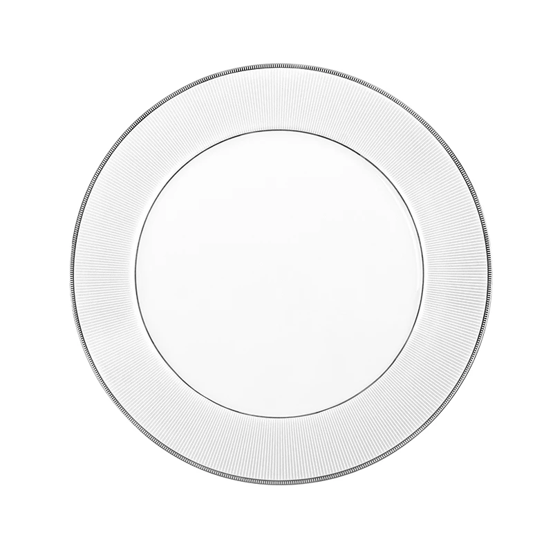 Πιατέλα στρογγυλή πορσελάνης σε λευκό χρώμα με πλατίνα, της σειράς Classic Stripes από την Oriana Ferelli - Διαστάσεις: 31εκ. - Η ελάχιστη ποσότητα αγοράς για αυτό το προιόν είναι 2τμχ.
