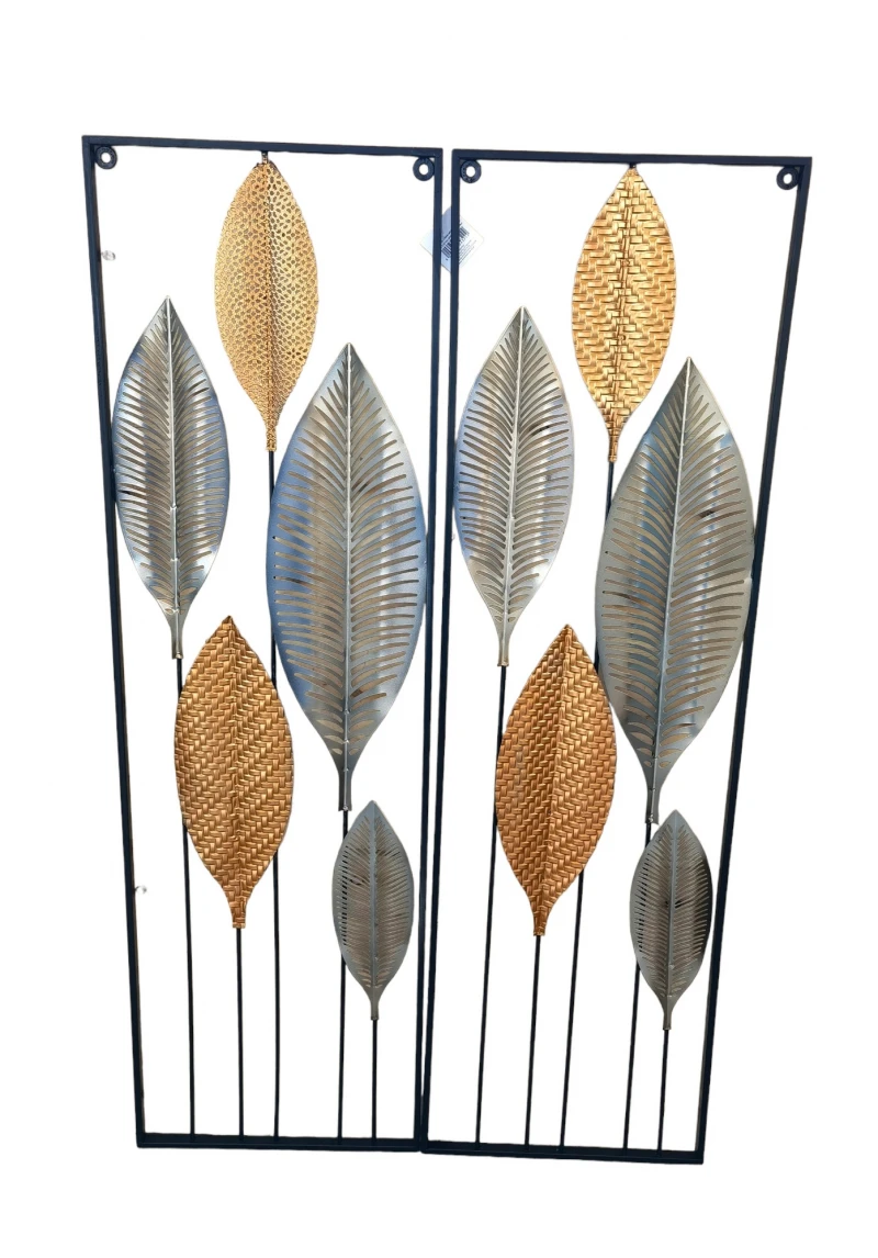 Σετ 2τμχ διακοσμητικά τοίχου μεταλλικά με σχέδιο φύλλα σε χρυσό-ασημί χρώμα από την Oriana Ferelli Collections - Διαστάσεις: 30x99εκ. (το καθένα)