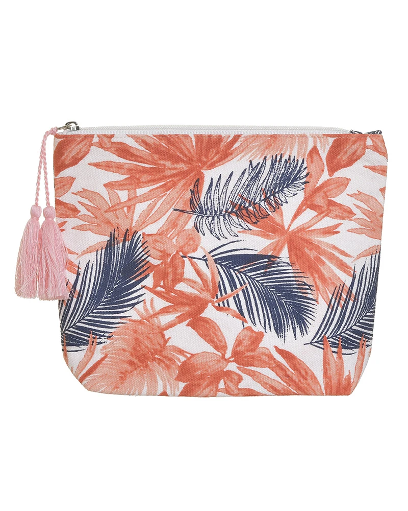 Τσαντάκι 50% βαμβάκι-50% polyester σε πορτοκαλί-μπλε χρώμα με φύλλα από την ble - Διαστάσεις: 19x5x20εκ.
