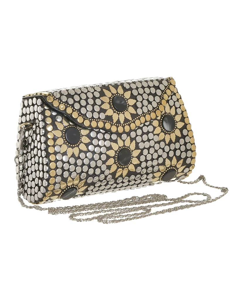 Τσαντάκι μεταλλικό σε χρυσό-ασημί-μαύρο χρώμα με αλυσίδα από την ble - Διαστάσεις: 15x5x9/48εκ.