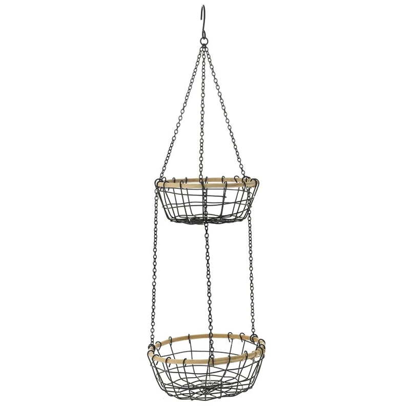 Καλάθι διπλό κρεμαστό μεταλλικό σε μαύρο χρώμα από την iliadis - Διαστάσεις: Φ22x9εκ.-Φ19x8εκ./67εκ.