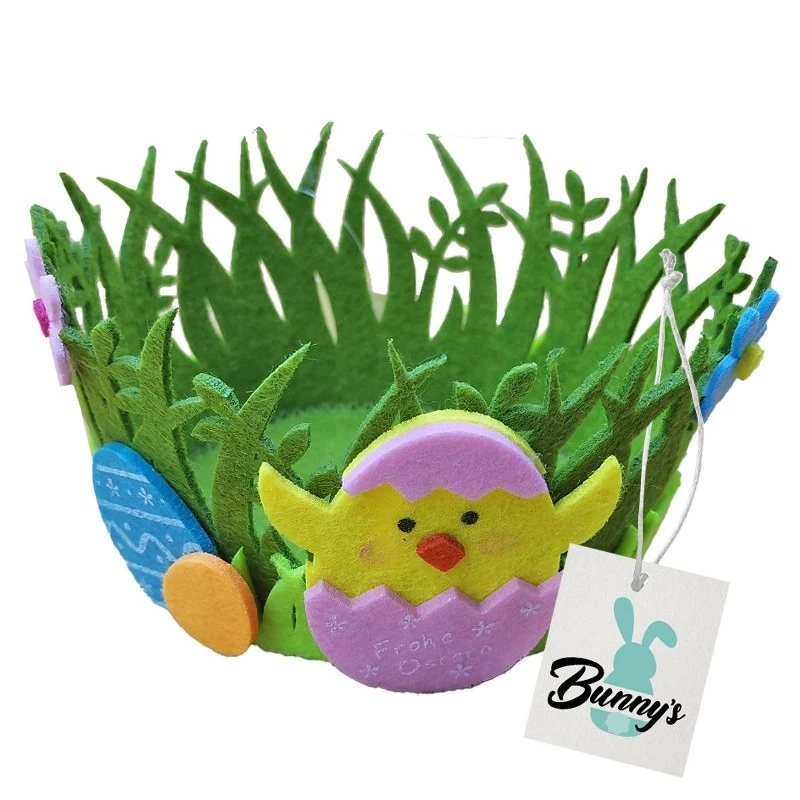 Πασχαλινό διακοσμητικό καλάθι τσόχινο με αυγό και πουλάκι από την Bunny's - Διαστάσεις: 15x9εκ.