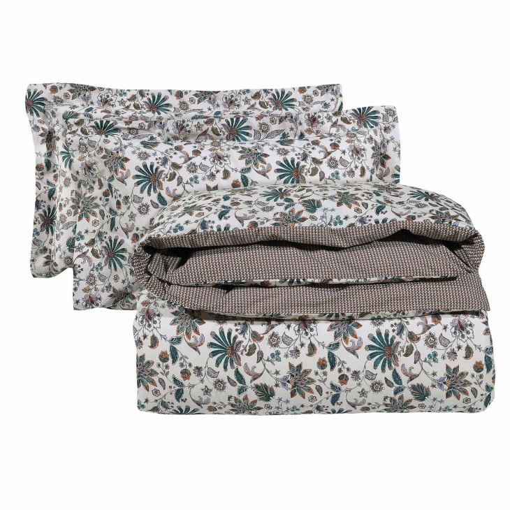 Σετ Σεντόνια Βαμβακερά Μονά 170x260εκ. Happy 9594 Καφέ-Εκρού-Μωβ-Πετρόλ