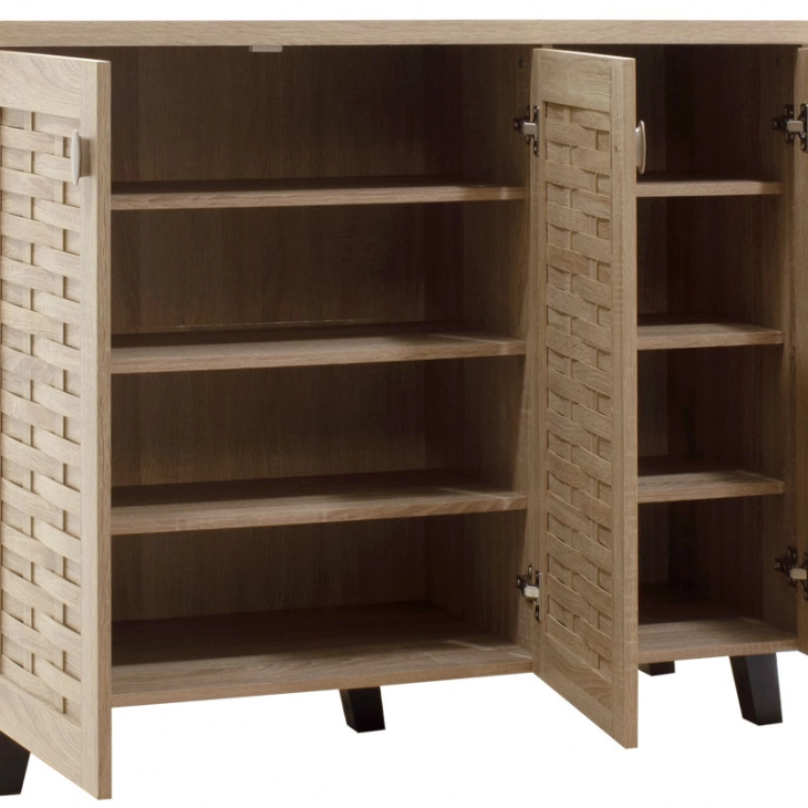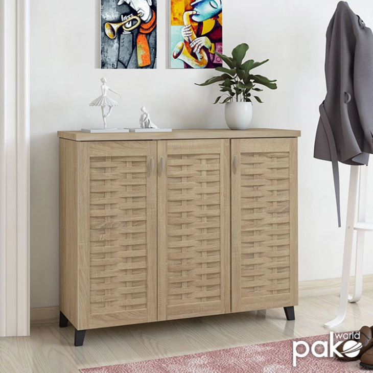 * Περιλαμβάνει τρεις πόρτες σε σχέδιο-μοτίβο πλέγματος, εσωτερικά φέρει έξι ράφια για 16 ζεύγη παπουτσιών, ρούχα ή αξεσουάρ.
