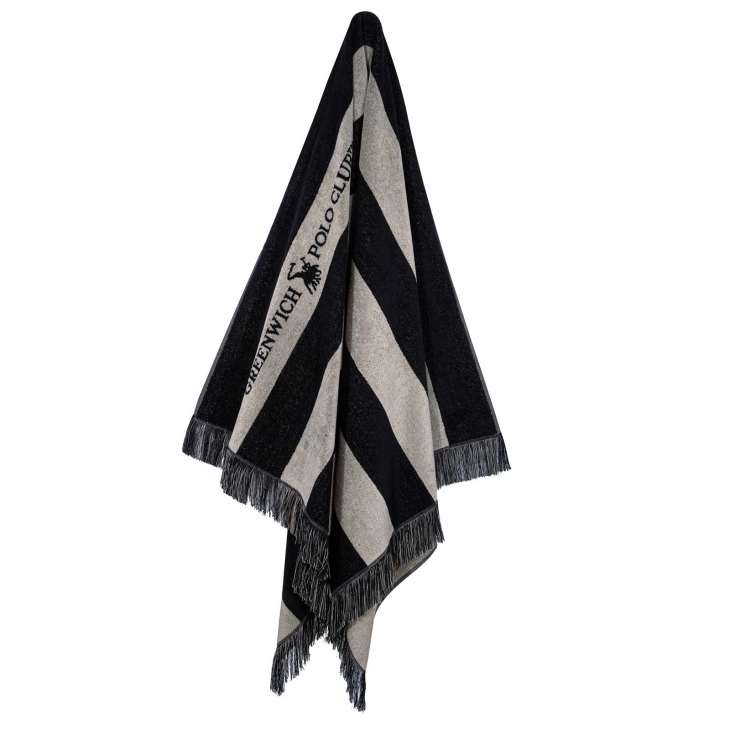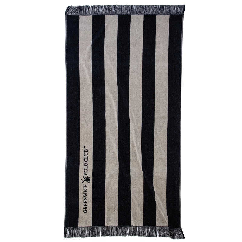 Πετσέτα Θαλάσσης Βαμβακερή 90x170εκ. Essential 3727 Μπεζ-Μαύρη Greenwich Polo Club