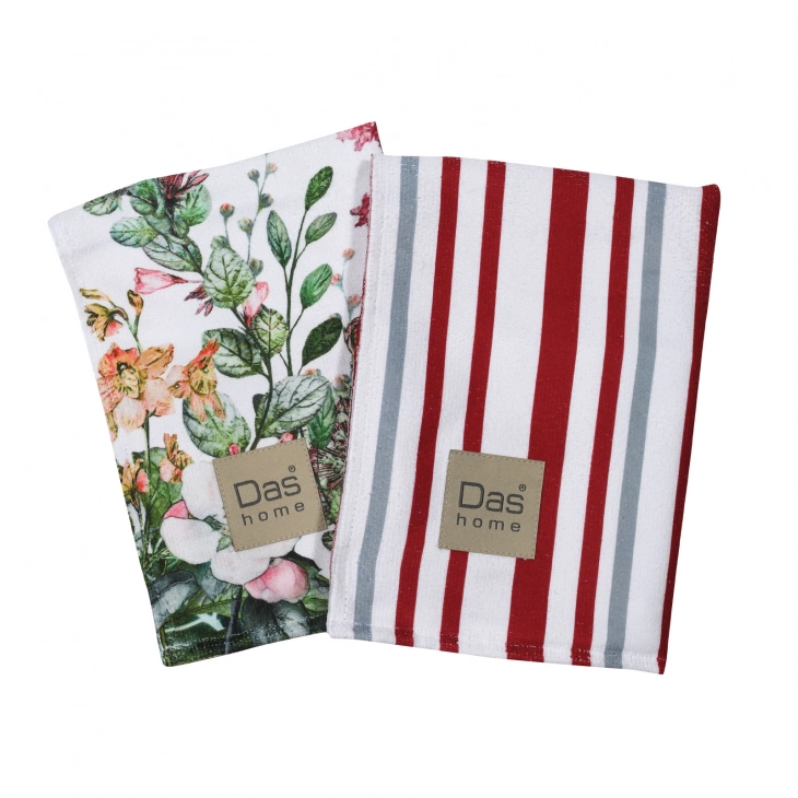 Δώστε χρώμα στη κουζίνα σας με το σετ ποτηρόπανα της Das home. Ιδιαίτερα εύχρηστα, ανθεκτικά στη χρήση και πολύ απορροφητικά από 100% microfibre. Το σετ αποτελείται από δύο ποτηρόπανα με κέντημα σε διάσταση 40x65εκ.