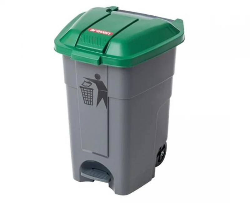 Κάδος απορριμμάτων πλαστικος σε γκρι-πράσινο χρώμα από την Araven - Χωρητικότητας: 50lt - Διαστάσεις: 46,7x43x62εκ.