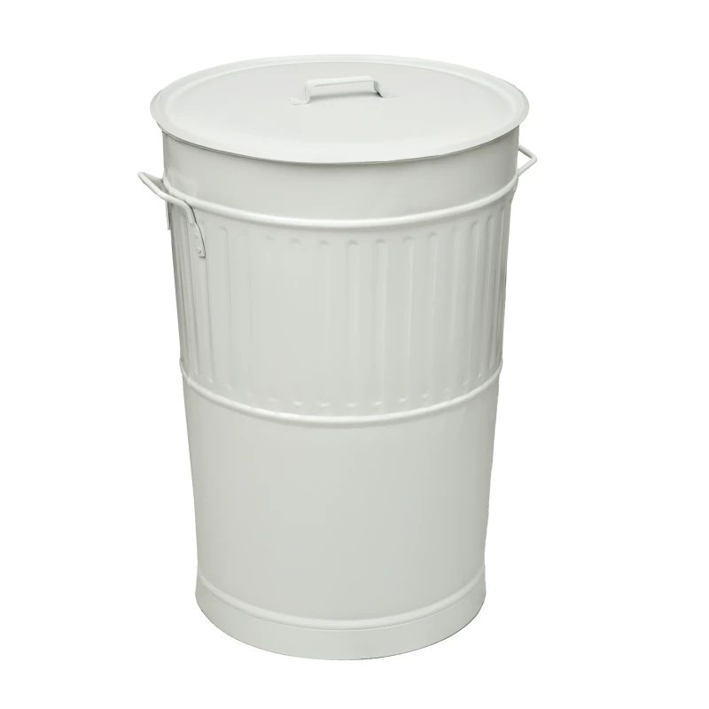 Κάδος απορριμάτων από γαλβανισμένο χάλυβα σε λευκό ματ χρώμα της σειράς Retro από την Pam & Co - Διαστάσεις: 48x68εκ., Χωρητικότητας: 100lt.