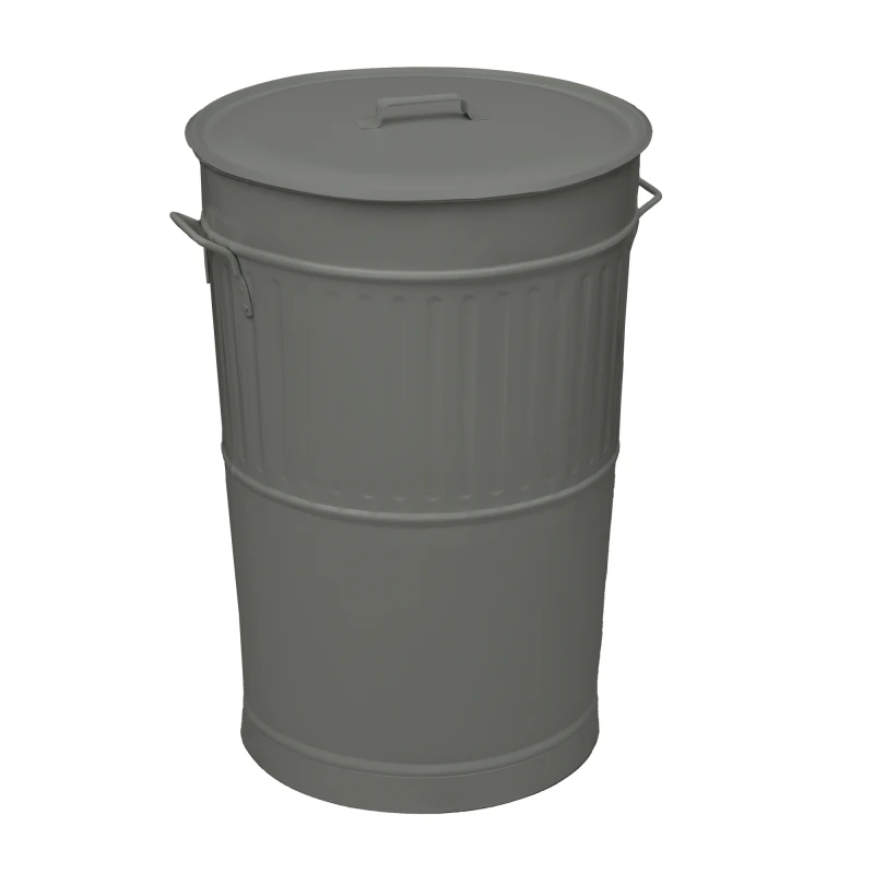 Κάδος απορριμάτων από γαλβανισμένο χάλυβα σε γκρι ματ χρώμα της σειράς Retro από την Pam & Co - Διαστάσεις: 48x68εκ., Χωρητικότητας: 100lt.