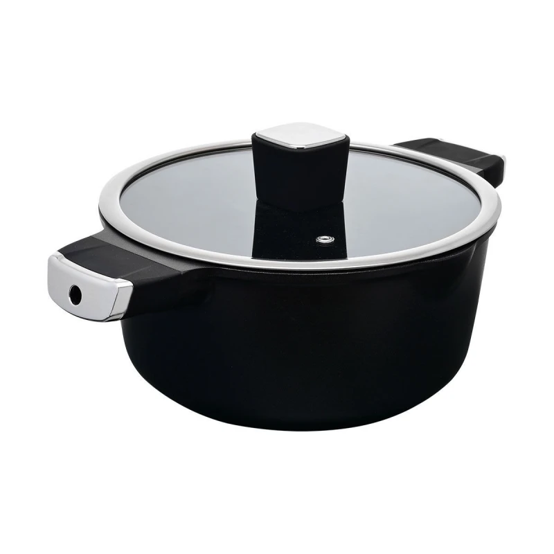 Κατσαρόλα χυτού αλουμινίου, με εργονομικές και αντιθερμικές λαβές, με τριπλή αντικολλητική επίστρωση και ενισχυμένη εξωτερική επιφάνεια, με πυράντοχο tempered glass καπάκι, κατάλληλη για κάθε τύπο εστίας, της σειράς Nordic από την estia - Διαστάσεις: 28εκ.- 41,7x29x17,6εκ.