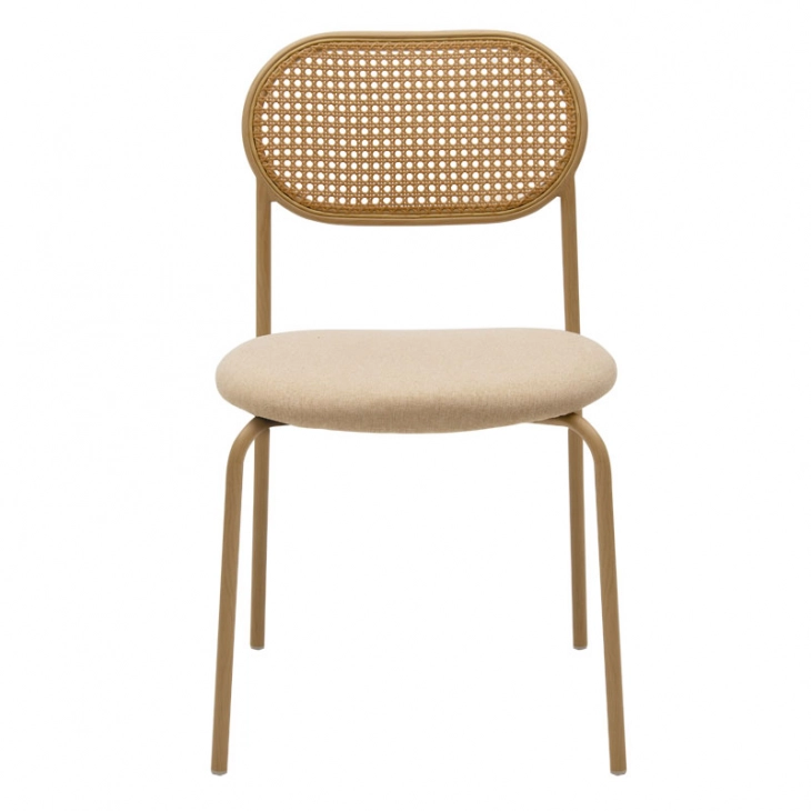Καρέκλα James pakoworld pe rattan ύφασμα μπεζ-μέταλλο φυσικό