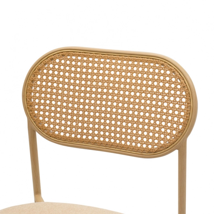 Πλάτη καρέκλας από PE rattan. Το PE rattan είναι ένα είδος οικολογικού συνθετικού rattan, ανακυκλώσιμο και με μεγαλύτερη ανθεκτικότητα σε σχέση με τα άλλα είδη.