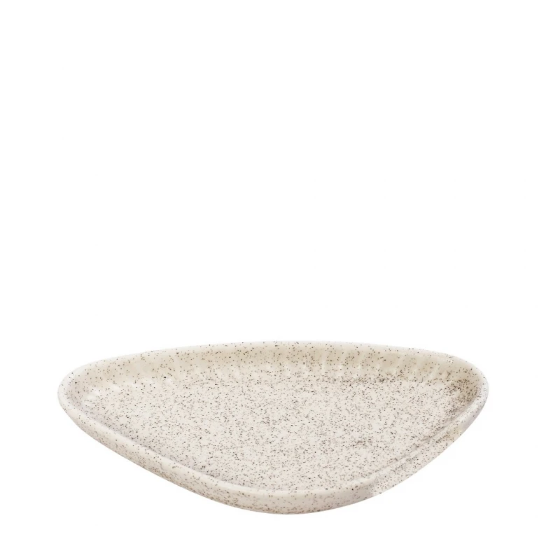 Πιάτο φρούτου τριγωνικό stoneware σε ματ λευκό-μπεζ χρώμα της σειράς Gobi από την ESPIEL - Διαστάσεις: 20x11x2,6εκ. - Η ελάχιστη ποσότητα αγοράς για αυτό το προϊόν είναι 6τμχ.